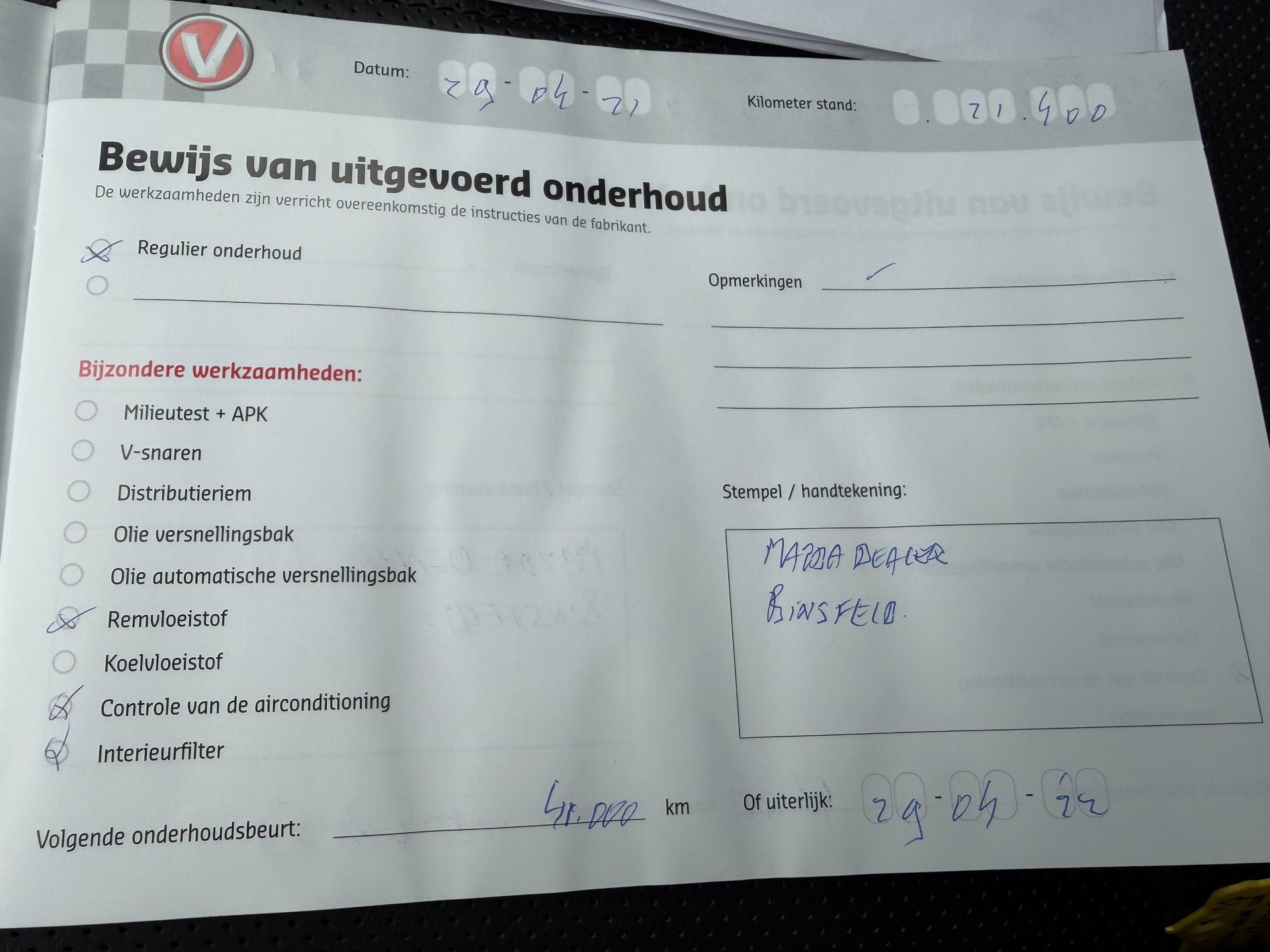 - Onderhoudsboekje aanwezig?