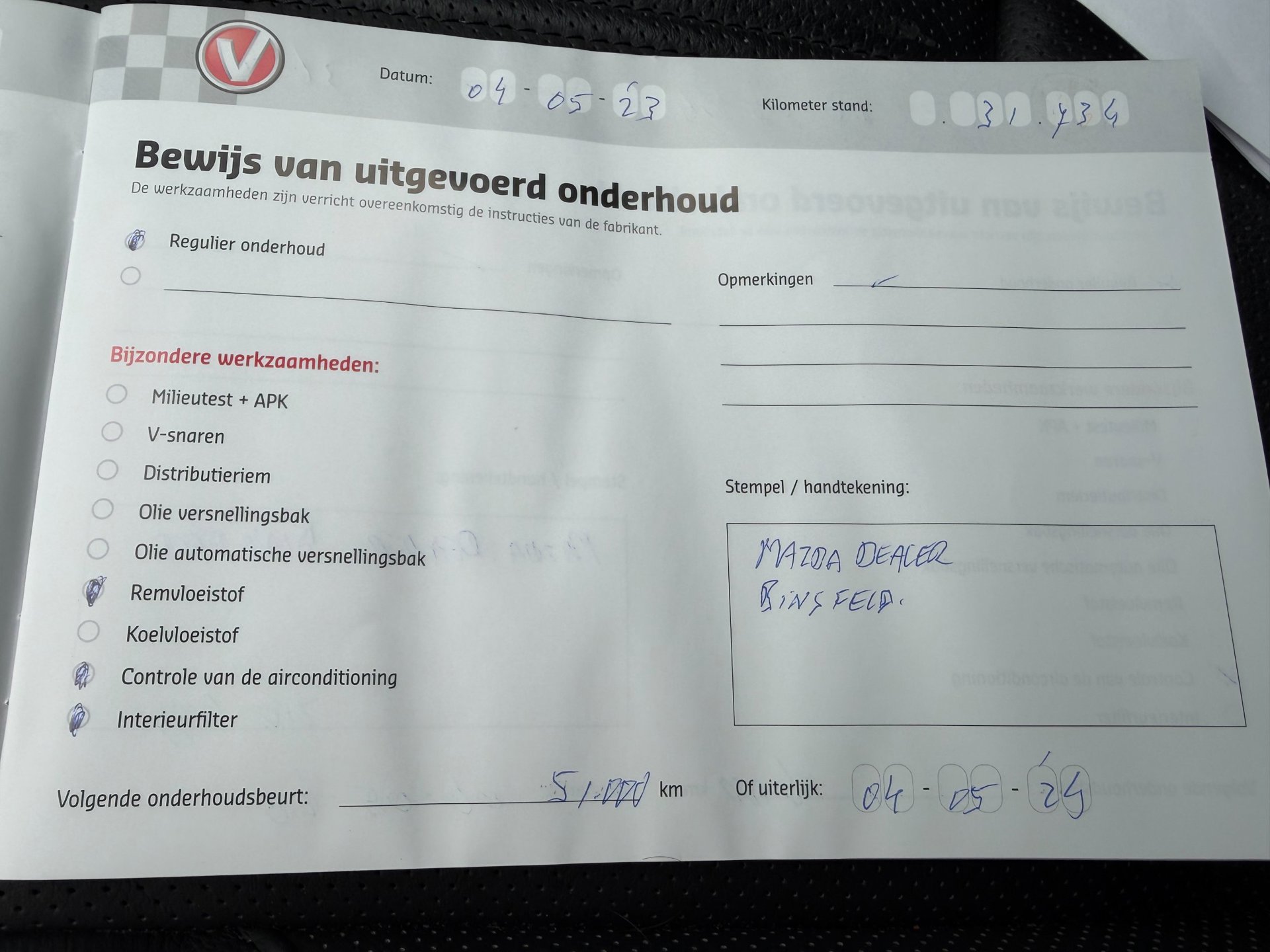 - Onderhoudsboekje aanwezig?